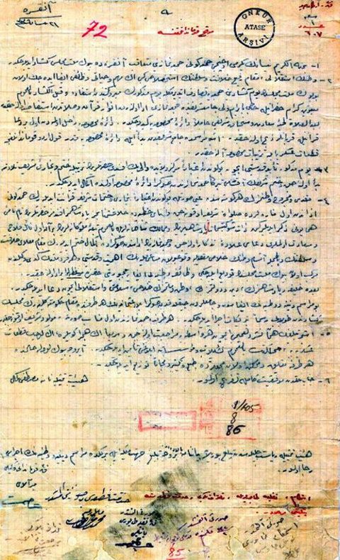 [Mustafa Kemal Paşa’nın askerî ve idarî birimlere gönderdiği ve meclisin açılışının nasıl olacağının belirtildiği orjinal tebligat metni]