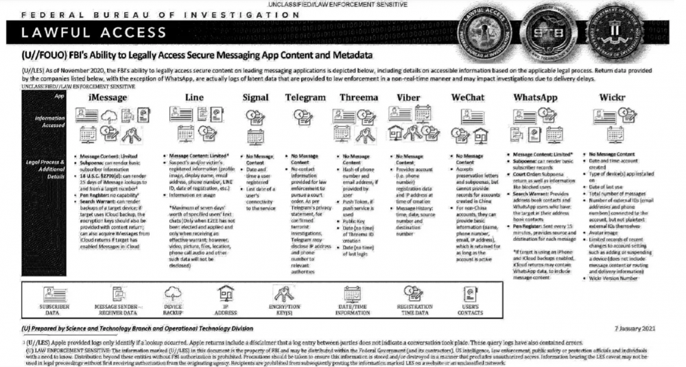 İsviçre’nin kararı ABD ordusuna ilişkin FBI’dan bir belgenin ardından alındı. Belgede ABD kolluk kuvvetlerinin mesajlaşma uygulamaları üzerinde yaptıkları gözetime ilişkin kabiliyetleri yer alıyordu. Belge, şifreli mesajlaşma uygulamalarından hangi verilerin çıkarılabileceğine dair bir eğitim belgesi niteliğindeydi.