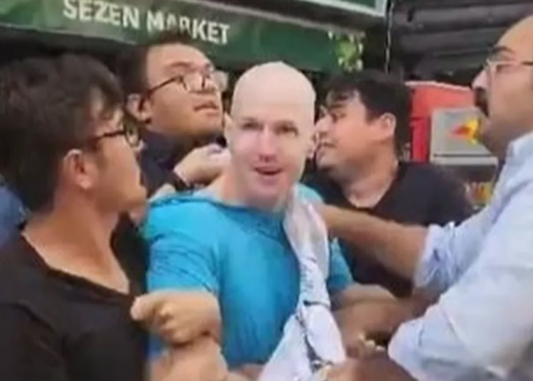 Alsancak Kıbrıs Şehitleri Caddesi’nde, aralarında Türkiye Gençlik Birliği (TGB) üyelerinin de bulunduğu kalabalık bir grup, ABD askeri olduğunu fark ettikleri kişinin başına çuval geçirdi.
