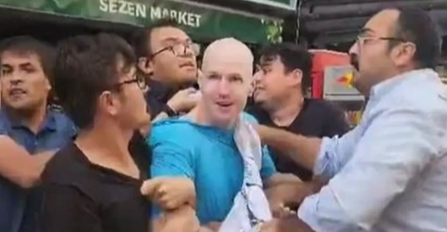 Çuval geçirilme anı, çevredeki insanlar tarafından kameralar aracılığıyla kaydedildi.