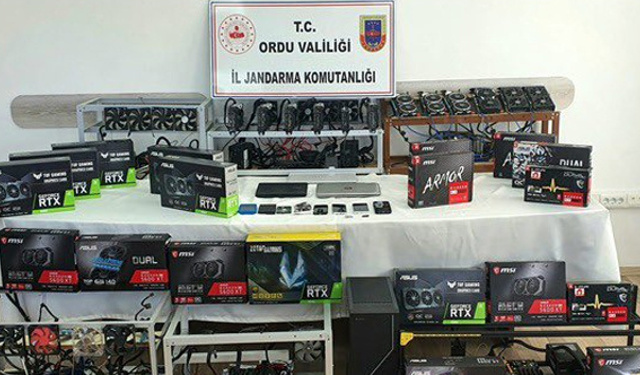 Operasyon, Jandarma Genel Komutanlığı’nın resmî Twitter hesabı üzerinden duyuruldu. Yapılan paylaşımda, “Ordu İl Jandarma Komutanlığınca kripto para üretimi yaptığı tespit edilen şahıslara Altınordu’da yapılan operasyonda; -6 anakart, -25 ekran kartı, -25 riser, -9 ram bellek, -9 güç kaynağı, -15 soğutucu fan ve çok sayıda suç unsuru malzeme ele geçirilerek 4 şüpheli yakalanmıştır.” ifadelerine yer verildi.