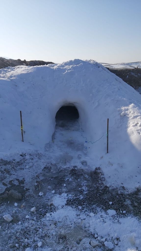 Yığılan karların içi tünel şeklinde oyularak ve sonrasında içerisi kubbe şeklinde oyularak  insa edilen Kar mağarası, 4 kişi ile 4 saatte yapılır.