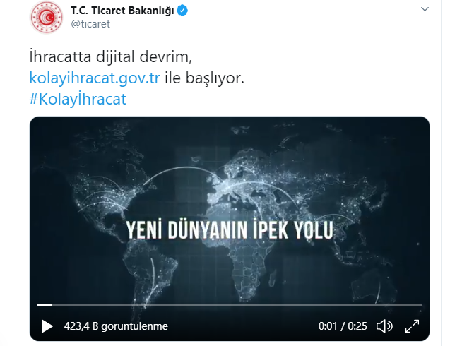 Ticaret Bakanlığı resmi sosyla medya hesabından Kolay İhracat Platformu hakkında videolu bir paylaşımda bulundu. Yapılan paylaşımda Kolay İhracat Platformu kullanıcılarına ön bilgi verildi.
