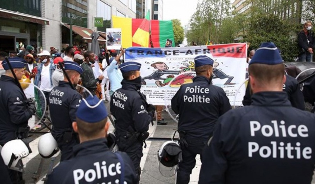 Kamerun bayrakları taşıyan protestocular, “Katil Macron”, “Suçlu Macron”, “Kamerun, Macron yüzünden nefes alamıyor” sloganları attı.