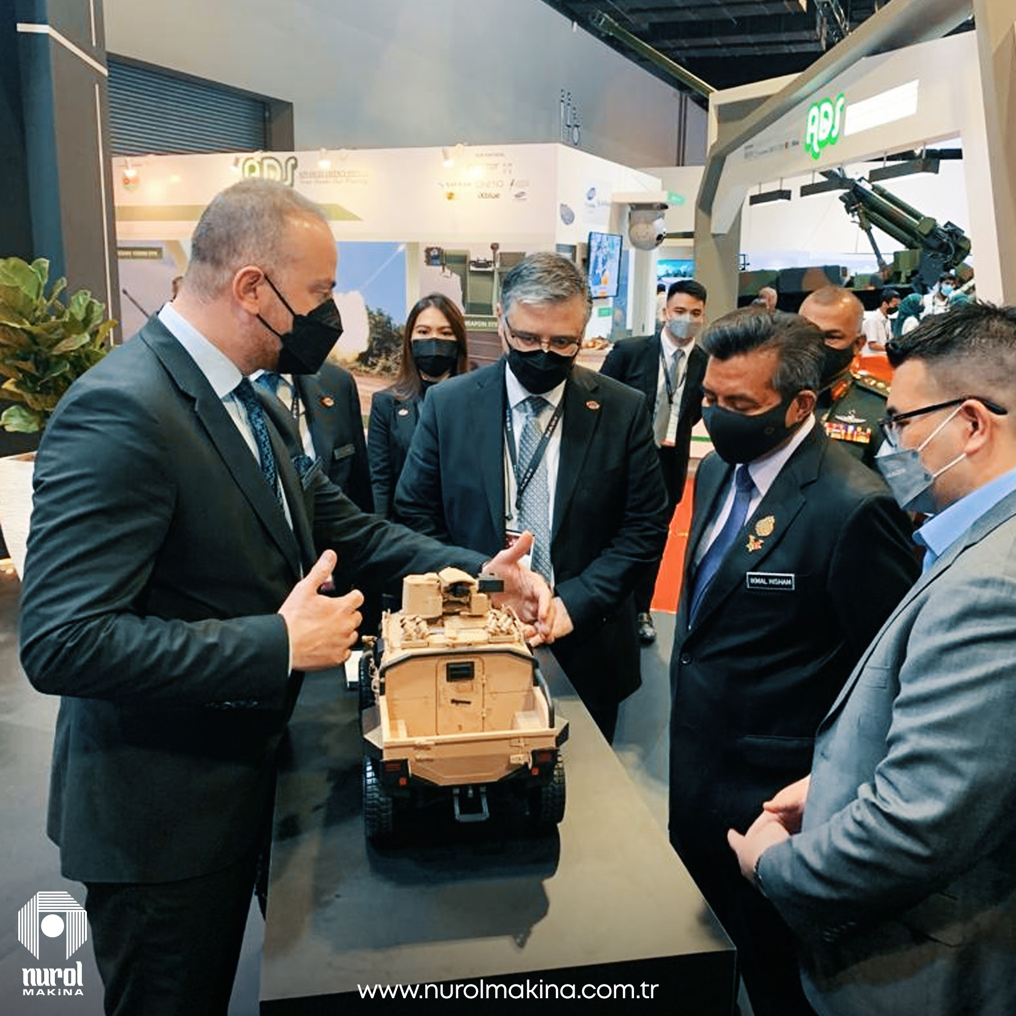 28 Mart’ta kapılarını açan Fuar’da Türk savunma sanayiinin lider şirketlerinden Nurol Makina ve Sanayi A.Ş. de ürünlerini sergiliyor. Fuarın ikinci gününde Malezya Savunma Bakan Yardımcısı YB Dato’ Sri Ikhmal Hisham bin Abdul Aziz de Nurol Makina ve Sanayi A.Ş.’yi ziyaret etti. Malezya Savunma Bakan Yardımcısı şirket yetkilileri tarafından ağırlandı.