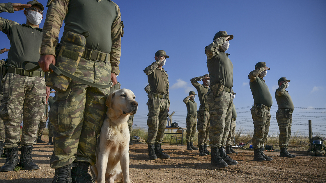 Bölgede arama yapan “hassas burunlar”, bulduğu bir patlayıcının çevresine oturarak, bakıcısını uyarıyor ve olası bir kazanın önüne geçiyor.