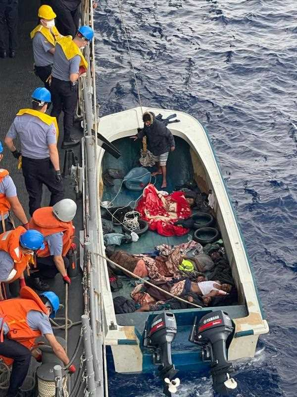 İçerisinde yarı baygın hâlde 17 düzensiz göçmenin bulunduğu belirlenen tekneye müdahale edilerek göçmenlerin hızlıca gemiye alınması sağlandı.