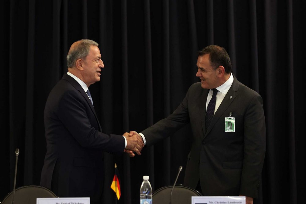 Daha sonra toplantının yapılacağı salona geçen Bakan Akar, toplantı öncesinde aralarında Ukrayna Savunma Bakanı Oleksii Reznikov, Yunanistan Savunma Bakanı Nikolaos Panagiotopoulos, Tunus Savunma Bakanı Imed Memmich’un da bulunduğu bazı mevkidaşları ile ayaküstü sohbet etti.