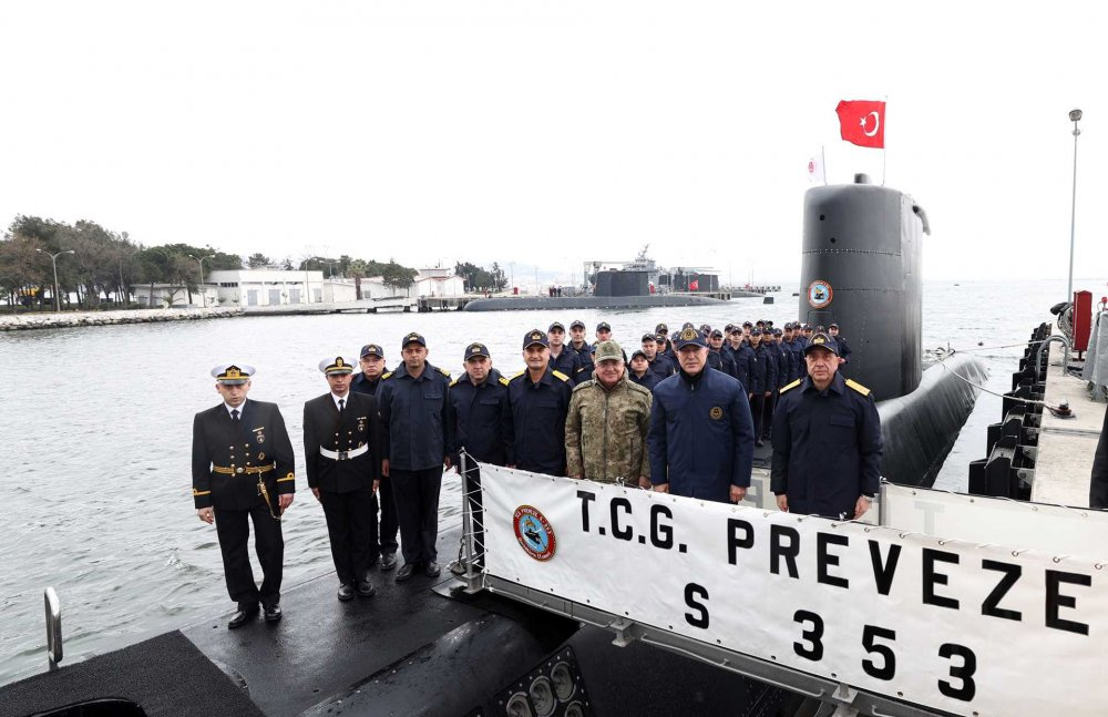 Donanma Komutanı Oramiral Ercüment Tatlıoğlu ve diğer yetkililer tarafından karşılanan Bakan Akar daha sonra Denizaltı Filosu Komutanlığına geçti. Burada Tören Kıtasını selamlayan Bakan Akar beraberinde Genelkurmay Başkanı Orgeneral Yaşar Güler ile “Derinliklerin Efsanesi” parolasıyla görev yapan TCG PREVEZE denizaltısına gitti.
