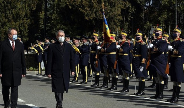 Romanya Savunma Bakanı Nicolae Ionel Ciuca tarafından karşılanan Akar için burada askeri tören düzenlendi. İki bakanın tören alanındaki yerlerini almalarının ardından askeri bando tarafından ulusal marşlar çalındı. Akar’ın tören kıtasını Rumence selamlamasının ardından karşılama töreni resmigeçitle sona erdi.