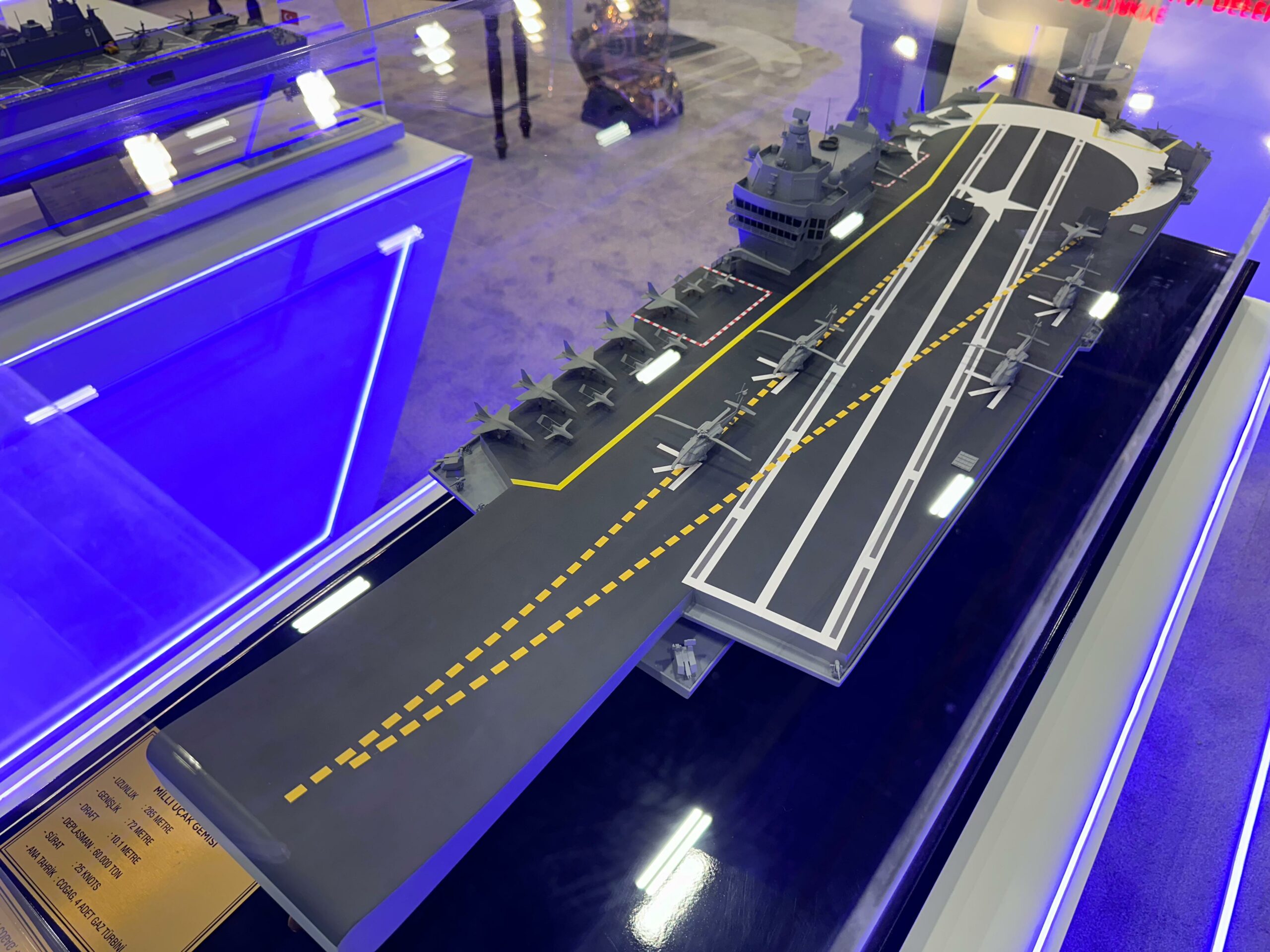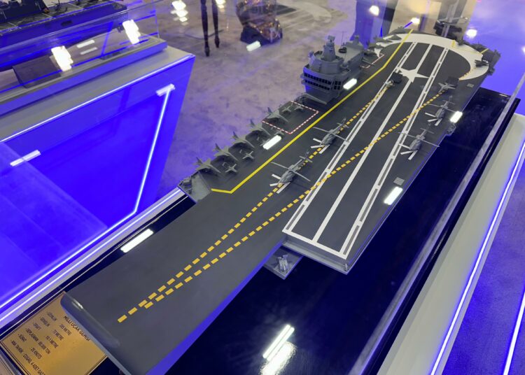 Geçtiğimiz Şubat ayında Deniz Kuvvetleri Komutanlığı Dizayn Proje Ofisi tarafından tasarım faaliyetlerine başlanan Milli Uçak Gemisi’nin maketi ilk kez SAHA EXPO 2024 Uluslararası Savunma, Havacılık ve Uzay Sanayi Fuarı’nda sergileniyor.