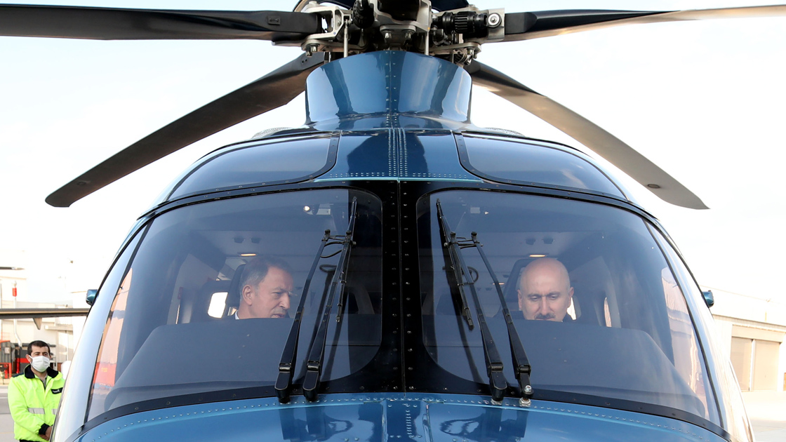 F-16’nın kritik sistemlerinin millileştirilmesi projesi ile Hava Platformunda Uzaktan Elektronik Destek/Elektronik Taarruz Kabiliyeti (Hava Soj) Projesi’nde kullanılacak uçaklarda incelemelerde bulunan üç bakan, daha sonra yerli imkanlarla geliştirilip üretilen ilk genel maksat helikopteri Gökbey’in yanına gitti.