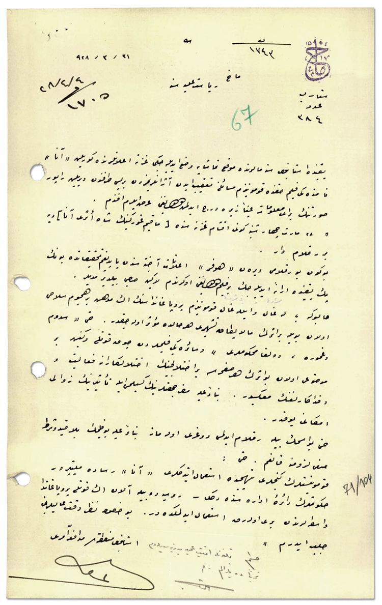 İstiklal Harbi’nin şiddetle devam ettiği günlerde “Karakol Cemiyeti”ne girerek kapanmasında rol oynayan, Kemalistlere ve Mustafa Kemal Paşa’ya yaklaşmayı başaran ancak sonunda Hint asıllı bir İngiliz casusu olduğu tespit edilen Mustafa Sagir hakkındaki 1921 tarihli belgenin “Osmanlıca” yazılmış orijinal hali de sitede sergileniyor.