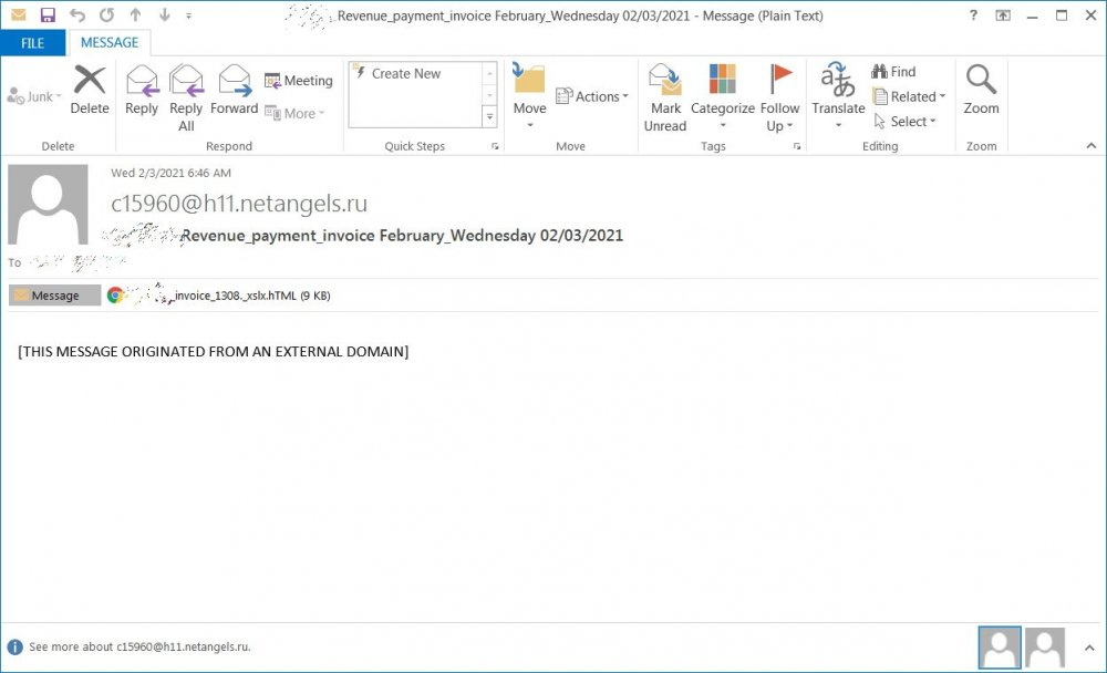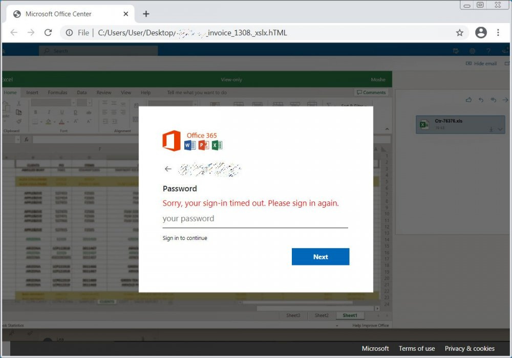 Gönderilen e-postada “Gelir ödeme faturası” konusu görülürken, ekte bir HTML dosyası olduğu görülüyor. Bu HTML dosyası içinde de sahte bir Office 365 girişi olduğu görülüyor. Ancak verilerin hackerlar tarafından Mors alfabesi şeklinde kodda gizlendiği de diğer bilgiler arasında.