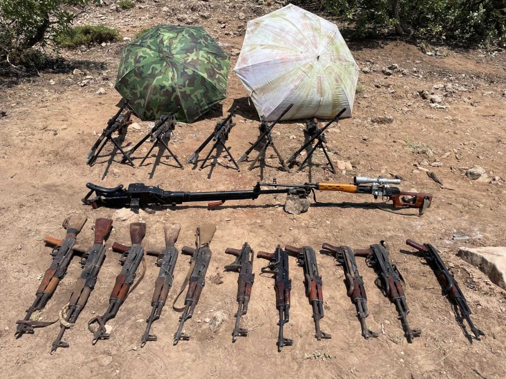 Son olarak ele geçirilenler şöyle: 1 adet Doçka uçaksavar silahı, 40 adet tuzaklanmış el bombası, 11 adet taarruz el bombası, 28 adet EYP, 11 adet AK-47 piyade tüfeği, 5 adet 7.62 mm PKMS makinalı tüfek, 1 adet Dragunov keskin nişancı tüfeği, 5 kg plastik patlayıcı, 36 adet RPG-7 roketatar antitank mühimmatı, 5 adet RPG-7 roketatar antipersonel mühimmatı, 1 adet RPG-7 roketatar termobarik mühimmatı, 178 adet EYP basma düzeneği, 6 adet 120 mm havan mühimmatı, 17.625 adet 12.7 mm mühimmat, 14.400 adet 7.62 mm PKMS makinalı tüfek mühimmatı, 135 adet 14.5 mm Doçka uçaksavar mühimmatı, 66 adet 40 mm bombaatar tahrip mühimmatı, 6 adet 40 mm bombaatar sis mühimmatı, 5 adet 7.62 mm PKMS makinalı tüfek yedek namlusu, 10 adet Dragunov keskin nişancı tüfeği şarjörü, 50 adet AK-47 piyade tüfeği şarjörü, 10 adet taarruz el bombası fünyesi, 28 adet RPG-7 roketatar sevk fişeği, 1 adet motorlu Doçka uçaksavar sehpası, 100 metre saniyeli fitil, 200 metre infilaklı fitil, 27 adet çeşitli renklerde sis, 2.350 metre elektrik kablosu, 300 metre uydu kablosu, 4 adet el testeresi, 2 adet elektrikli hilti ve 2 adet benzinli hilti, 70 adet hilti ucu, 3 adet benzinli hızar, 5 adet analog telefon, örgütsel doküman, 3 adet gaz maskesi ve filtresi, 8 adet akü, 5 adet jeneratör, 20 adet oksijen tüpü, 15 kutu havai fişek, 1 adet televizyon ve çanak anten, 1 adet 5 ton kapasiteli su tankı, çok sayıda muhtelif yaşam malzemesi.