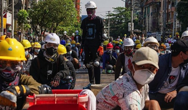 Myanmarlılar, 6 Şubat’ta demokrasiye dönüş talebiyle gösterilere başladı. Güvenlik güçlerinin silahlı müdahalelerinde en az 58 gösterici hayatını kaybederken 1500’ün üzerinde kişinin tutukluluğu sürüyor.