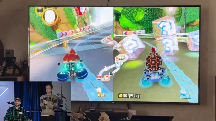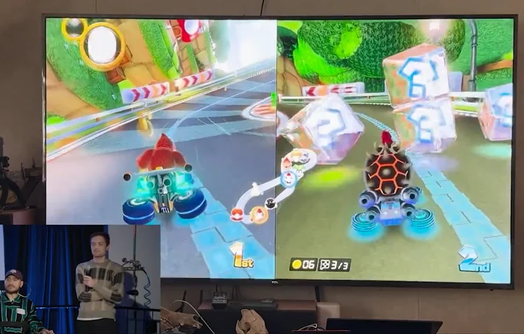 Neuralink, tüm katılımcılara Mario Kart oyununda yarışan Donkey Kong ve Bowser’ın bölünmüş ekranlı bir videosunu gösterdi. Chapman videoyu daha önce şirket içi bir kanalda yayınladığını ve insanlardan hangi oyuncunun bir beyin-bilgisayar arayüzü (BCI) tarafından kontrol edildiğini düşündüklerini oylamalarını istediğini söyledi. Videoda, Chapman’ın Bowser ile yarıştığını söyleyen Arbaugh, sadece pistin çizgilerini takip etmekle kalmıyor, aynı zamanda oyundaki oyuncusunu kontrol etmek için sadece zihnini kullanarak başka bir oyuncuyu vurabiliyordu.