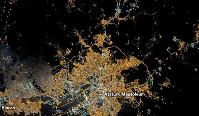 ABD Havacılık ve Uzay Ajansı (NASA), Uluslararası Uzay İstasyonu'ndan (ISS) çekilmiş bir Ankara fotoğrafını sosyal medyada paylaştı.