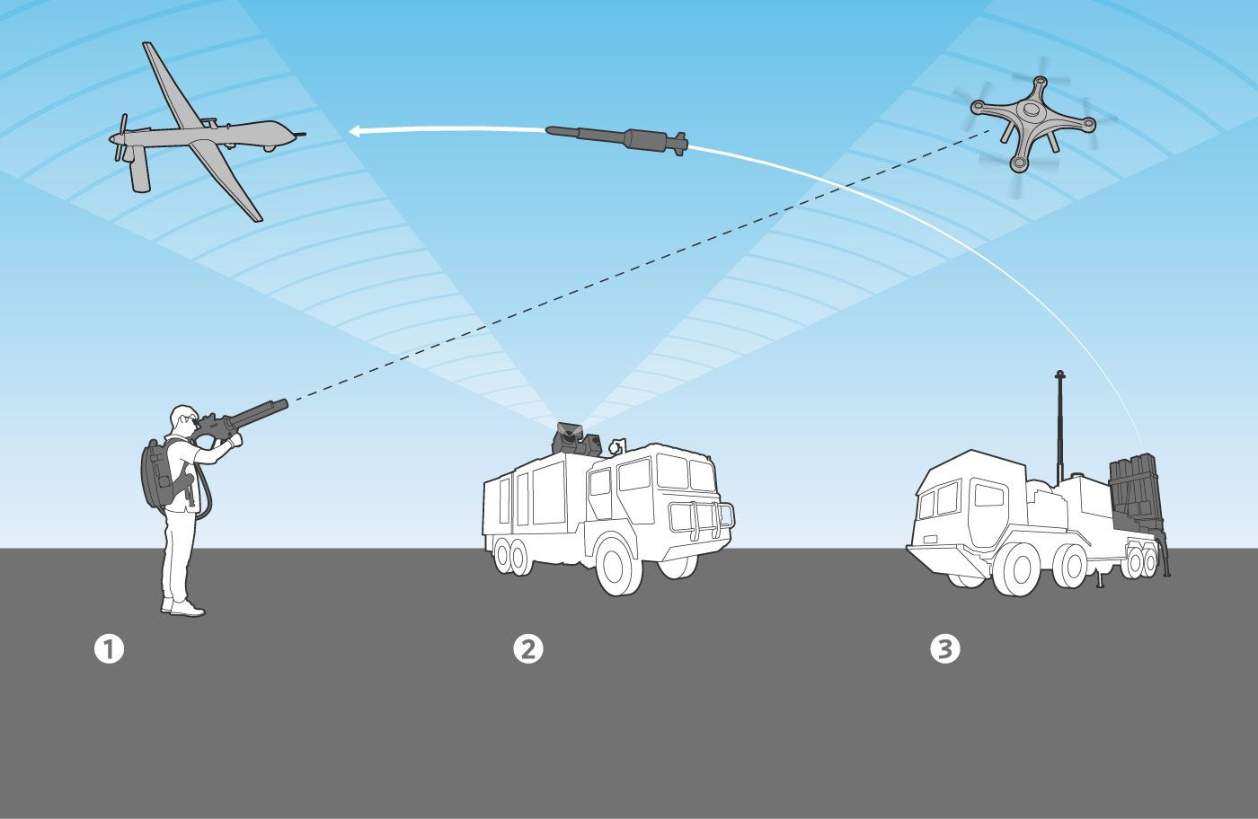 Ofis, ucuz, el ile taşınabilir portatif cihazlardan, düşük etki alanlı önleyicilere ve güçlü mikrodalga sinyallere kadar; savaş alanında gözlemlenen karmaşık ve değişken dron tehditleriyle başa çıkmak için çeşitli yetenekleri incelemeyi amaçlayan beş gösteri düzenlemiştir.