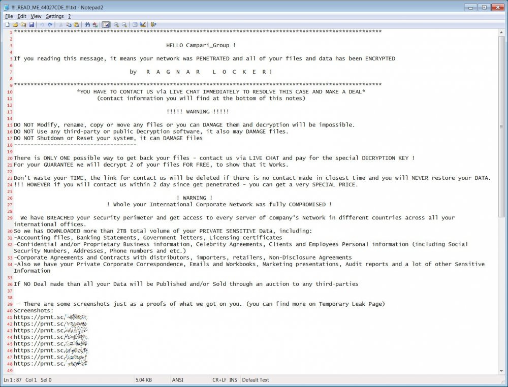Geçtiğimiz hafta da bir İtalyan firmasına ait 2 TB verinin şifrelendiği ve fidye olarak 15 milyon dolar talep edildiği aktarıldı.