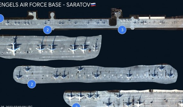 Uydu görüntülerine göre Saratov kentindeki Rus Hava Kuvvetleri’ne ait üssün apron kısmında yoğun hareketlilik yaşanıyor.