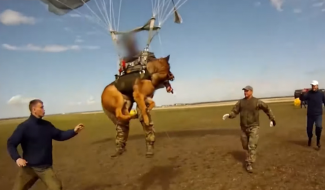 Sputnik’te yer alan haberde, özel operasyonlar için yetiştirilen köpek birlikleri bulunan Rus ordusu, savaş durumunda bölgelerde kullanmak istedikleri köpekleri, uçaklarla sahaya indirdi.