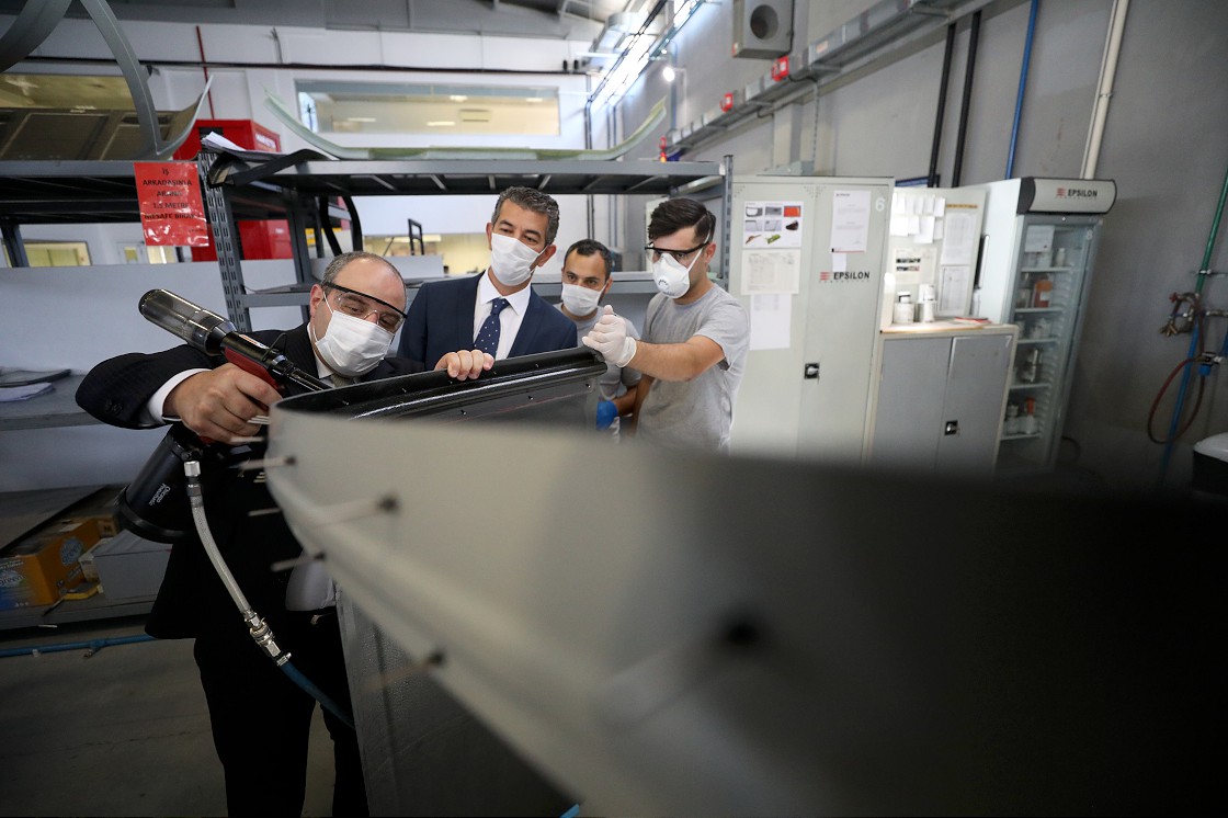Bakan Varank, Epsilon Kompozit Teknolojileri ve Savunma AŞ’yi ziyareti sırasında firma yetkililerinden bilgi aldı, üretim alanını inceledi.
