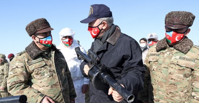 Milli Savunma Bakanı Hulusi Akar ve Azerbaycan Savunma Bakanı Zakir Hasanov, yaptıkları konuşmalarda “iki devlet tek millet” kavramı özelinde kardeşlik mesajları verdiler.