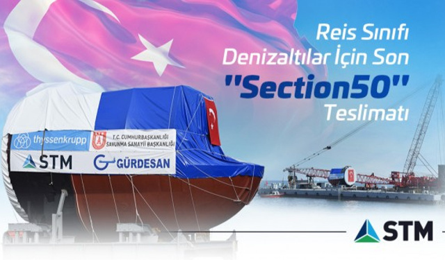 İlk kez Türkiye’de, yerli ve milli imkanlarla, STM mühendisliği ve koordinasyonunda, Gürdesan Gemi Makinaları Sanayii Ticaret A.Ş.’de üretilen “Section 50”nin dördüncü ve son teslimatı başarıyla tamamlandı. Reis Sınıfı denizaltılar için üretilen 1 adet “Section 50”, deniz yolu ile Gölcük Tersane Komutanlığı’na teslim edildi. Türkiye’de üretilen ve teslim edilen dördüncü ve son Section 50 bölümü, projenin son denizaltısı olan TCG SELMANREİS’e entegre edilecek. Mekanik olarak işlenmiş ve donatıma hazır hale getirilen son Section 50 bölümü, Gölcük Tersane Komutanlığı’nda donatılacak. STM ve Gürdesan, TCG MURATREİS’e entegre edilecek ilk Section 50 teslimatını Eylül 2021’de, TCG AYDINREİS ve TCG SEYDİALİREİS’e entegre edilecek ikinci ve üçüncü teslimatları ise Temmuz 2022’de gerçekleştirmişti.