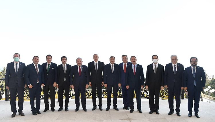 Azerbaycan Cumhurbaşkanı İlham Aliyev görüşmede, TBMM Başkanı Şentop ve parlamento heyetinin böyle olağanüstü bir dönemde Azerbaycan’ı ziyaretinin kendileri için çok önemli ve anlamlı olduğunu belirterek, tarih boyunca sürdürülen iyi ilişkileri, ‘tek millet iki devlet anlayışı’ ile daha üst noktalara taşımaya devam edeceklerini belirtti.