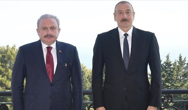 Resmi temaslarda bulunmak üzere parlamento heyeti ile birlikte Azerbaycan’a giden TBMM Başkanı Mustafa Şentop, Azerbaycan Cumhurbaşkanı İlham Aliyev ile görüştü.