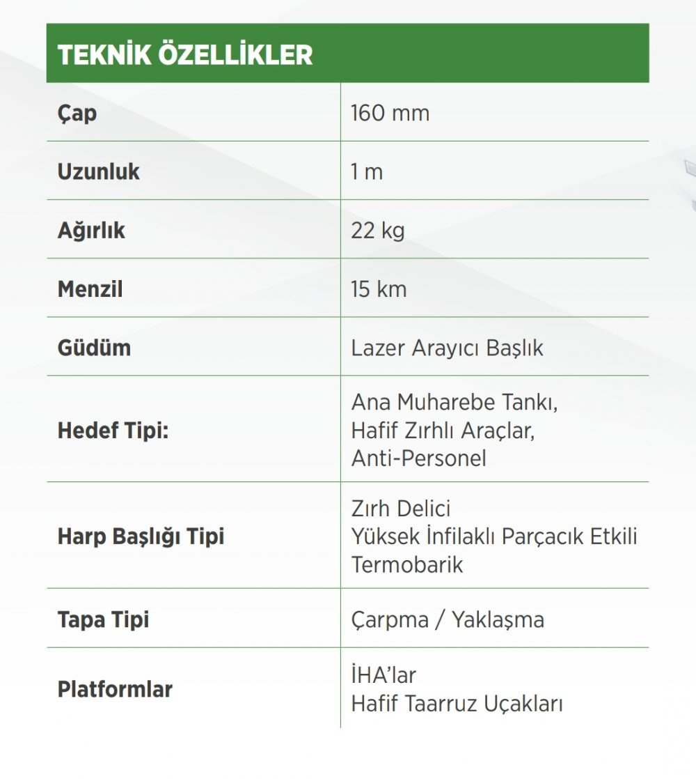 Aksungur’un yüksek uçuş irtifasından daha uzak menzile rahatlıkla uçabilecek MAM-L, zırh delici, yüksek infilaklı parçacık etkili ve termobarik toplam 3 farklı harp başlığına sahip.