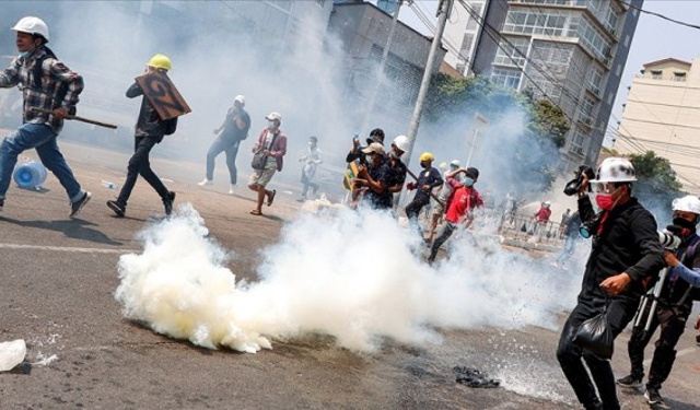 Myanmarlılar, 6 Şubat’ta demokrasiye dönüş talebiyle gösterilere başladı. Güvenlik güçlerinin silahlı müdahalelerinde 56 gösterici hayatını kaybetti.