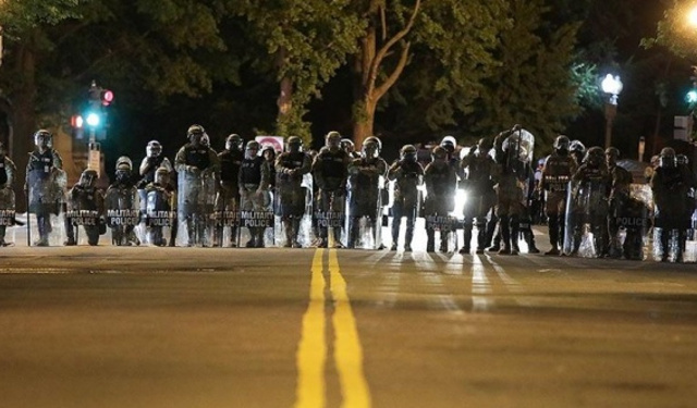 ABD'nin başkenti Washington'da polis, sokağa çıkma yasağına rağmen sokaklarda ve parklarda kalan göstericilere göz yaşartıcı gaz ve ses bombası ile ...