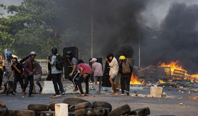 Myanmar'da askeri darbe ve seçilmiş hükümet üyelerinin gözaltına alınmasına karşı düzenlenen protestolara güvenlik güçlerinin silahlı müdahalesi sonucu en az 16 ...
