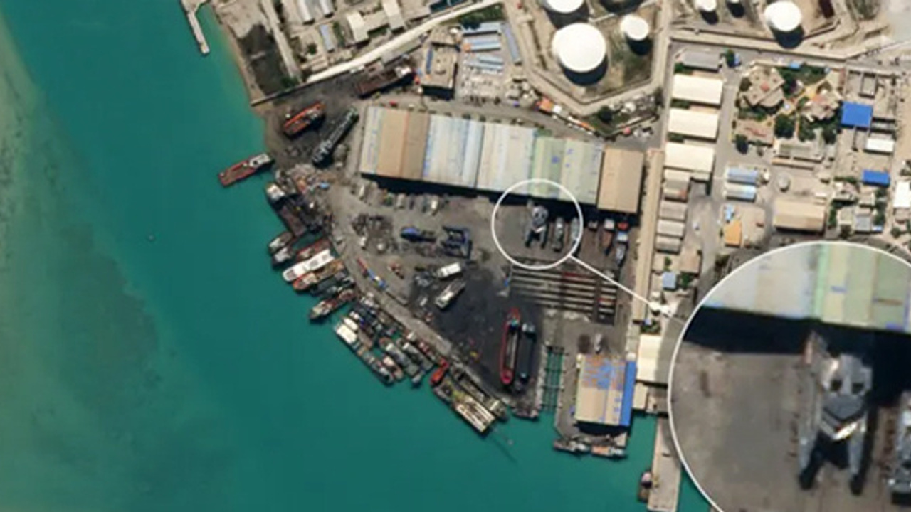 İran'ın Buşehr kentindeki limanda 64 metre uzunluğunda yeni bir füze korveti inşa ettiği uydu görüntülerine yansıdı.