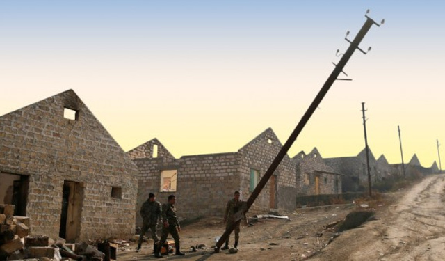 Dağlık Karabağ'ı kaybeden Ermeniler, ayrıldıkları şehirleri harabeye çeviriyor.