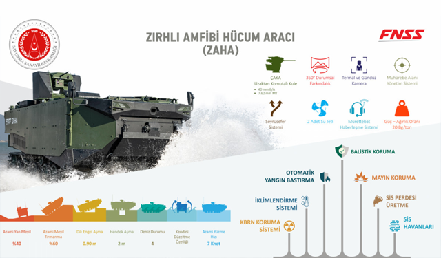 FNSS; Zırhlı Amfibi Hücum Aracı (ZAHA) Projesi kapsamında geliştirdiği 9 adet ZAHA'yı Deniz Kuvvetleri Komutanlığı Amfibi Piyade Tugayı'na teslim etti.