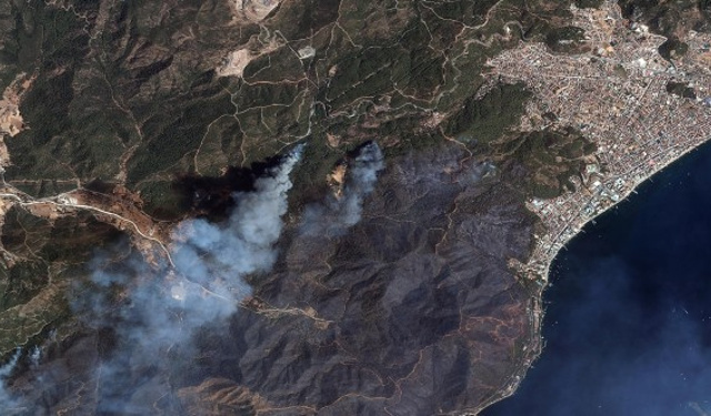 Türkiye'nin keşif uyduları Göktürk-1 ve Göktürk-2, yangın söndürme çalışmalarında kullanılması için Manavgat ve Marmaris'teki orman yangınlarını uzaydan görüntüledi.