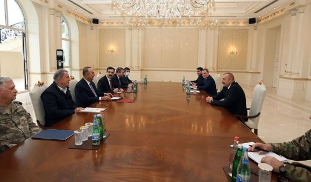 Azerbaycan Cumhurbaşkanı İlham Aliyev, Dışişleri Bakanı Mevlüt Çavuşoğlu ve Milli Savunma Bakanı Hulusi Akar'ı kabul etti.