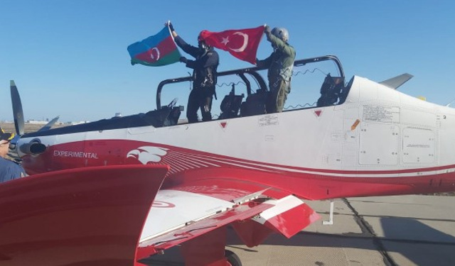 TUSAŞ tarafından üretilen askeri eğitim uçağı HÜRKUŞ, test ve gösterim için Azerbaycan'da uçuş gerçekleştirdi.