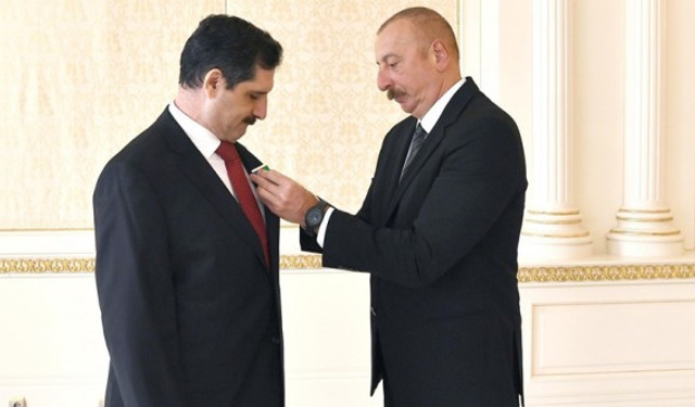 Azerbaycan Cumhurbaşkanı İlham Aliyev, Türkiye'nin Bakü Büyükelçisi Erkan Özoral'a "Dostluk Nişanı" takdim etti.