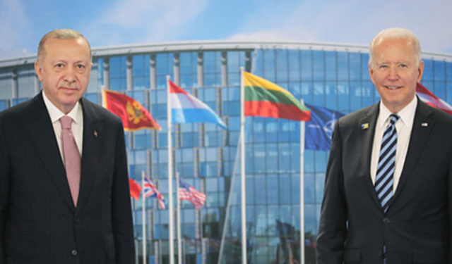 Cumhurbaşkanı Recep Tayyip Erdoğan NATO Liderler Zirvesi'ne katılmak için gittiği Brüksel'de ABD Başkanı Joe Biden, Fransa Cumhurbaşkanı İmmanuel Macron ve ...