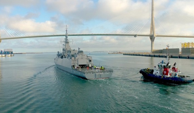 İspanyol Navantia Tersanesi tarafından Suudi Kraliyet Donanması için üretilen 5 adet Avante-2200 sınıfı korvetten ilki olan NB 546 AL-JUBAIL, Cadiz ...