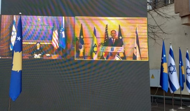 Kosova ile İsrail arasında diplomatik ilişkilerin resmen başlatılmasına yönelik anlaşma, çevrim içi ortamda düzenlenen törende imzalandı.