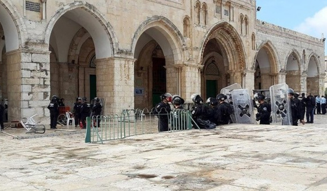 İsrail polisinin eşlik ettiği onlarca fanatik Yahudi, işgal altındaki Doğu Kudüs'ün Eski Şehir bölgesinde bulunan Mescid-i Aksa'nın avlusuna girdi.
