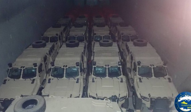 Akdeniz'de faaliyet gösteren İrini Operasyonu, Libya'ya BATT tipi zırhlı araç taşıyan Hollanda bayraklı MV Meerdijk ticari yük gemisine el koydu.
