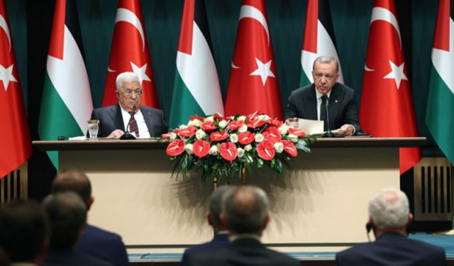 Filistin Devlet Başkanı Mahmud Abbas ile Cumhurbaşkanlığı Külliyesi'nde bir araya gelen Cumhurbaşkanı Erdoğan, Filistin'e verdiği desteği vurgularken Kudüs ve Mescid-i ...