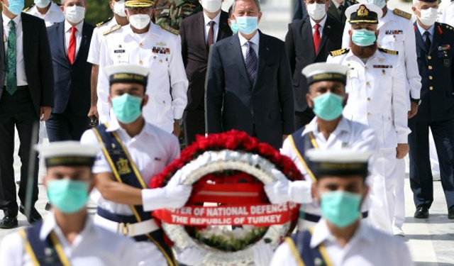 Milli Savunma Bakanı Hulusi Akar, Türkiye tarafından Pakistan'a ihraç edilen MİLGEM korvetlerinin üçüncüsünün kızağa konulması töreni sonrasında ülkenin kurucusu Muhammed ...