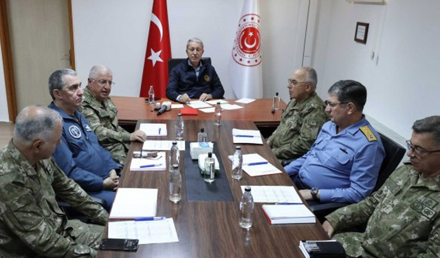 Millî Savunma Bakanı Hulusi Akar beraberindeki askerî heyetle birlikte sınır hattında inceleme ve denetlemelerde bulundu.